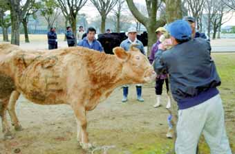 TVを見ていたら、先日熊本城に捨て犬ならぬ「捨て牛」があったと報道していました。6頭ほどの捨て牛の体には、「武部の能無し」などと狂牛病の監督責任者である厚生労働省を揶揄する落書きが、黄色のスプレーで書かれていました。TVに映った牛は、なんだかとてものどかそうな顔をしていて、体の落書きととてもギャップがありました。